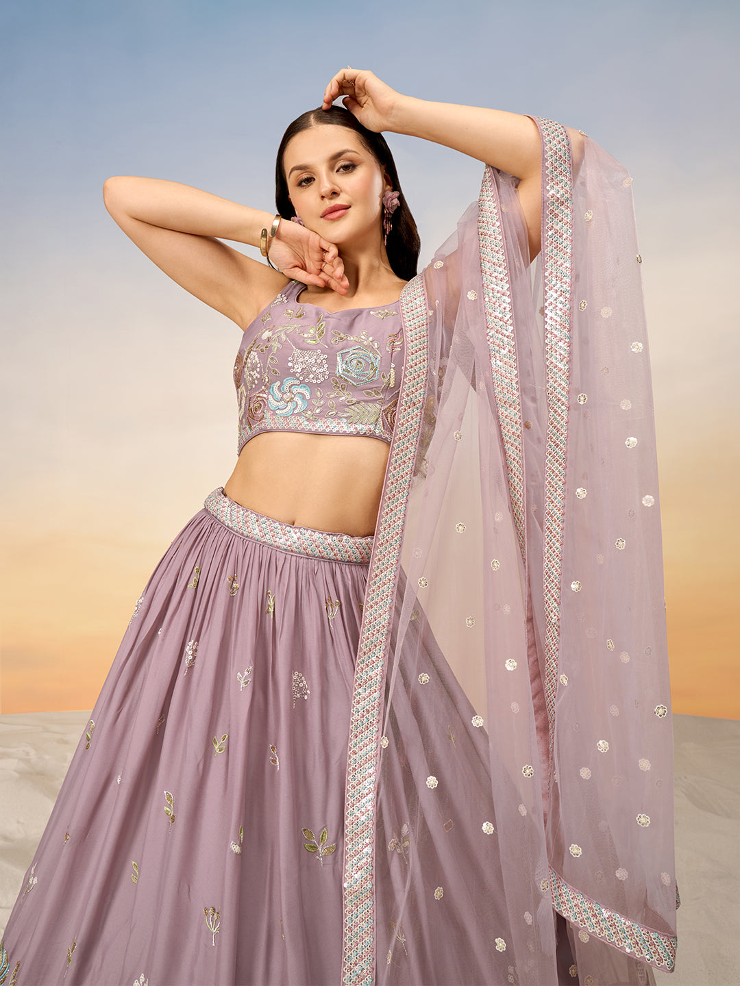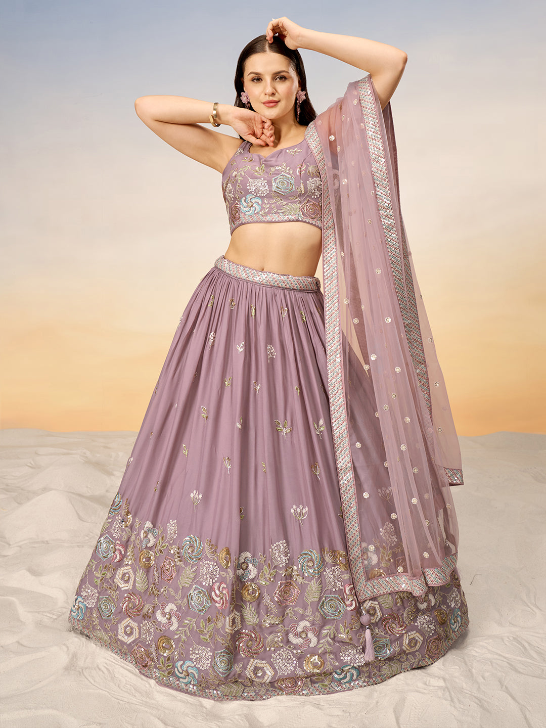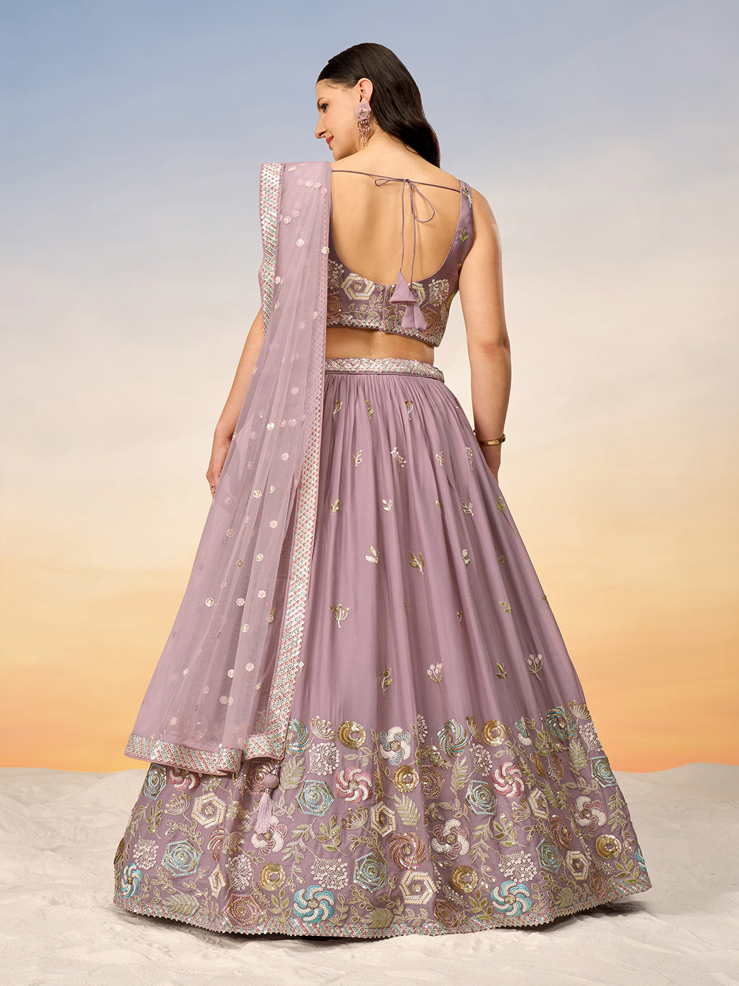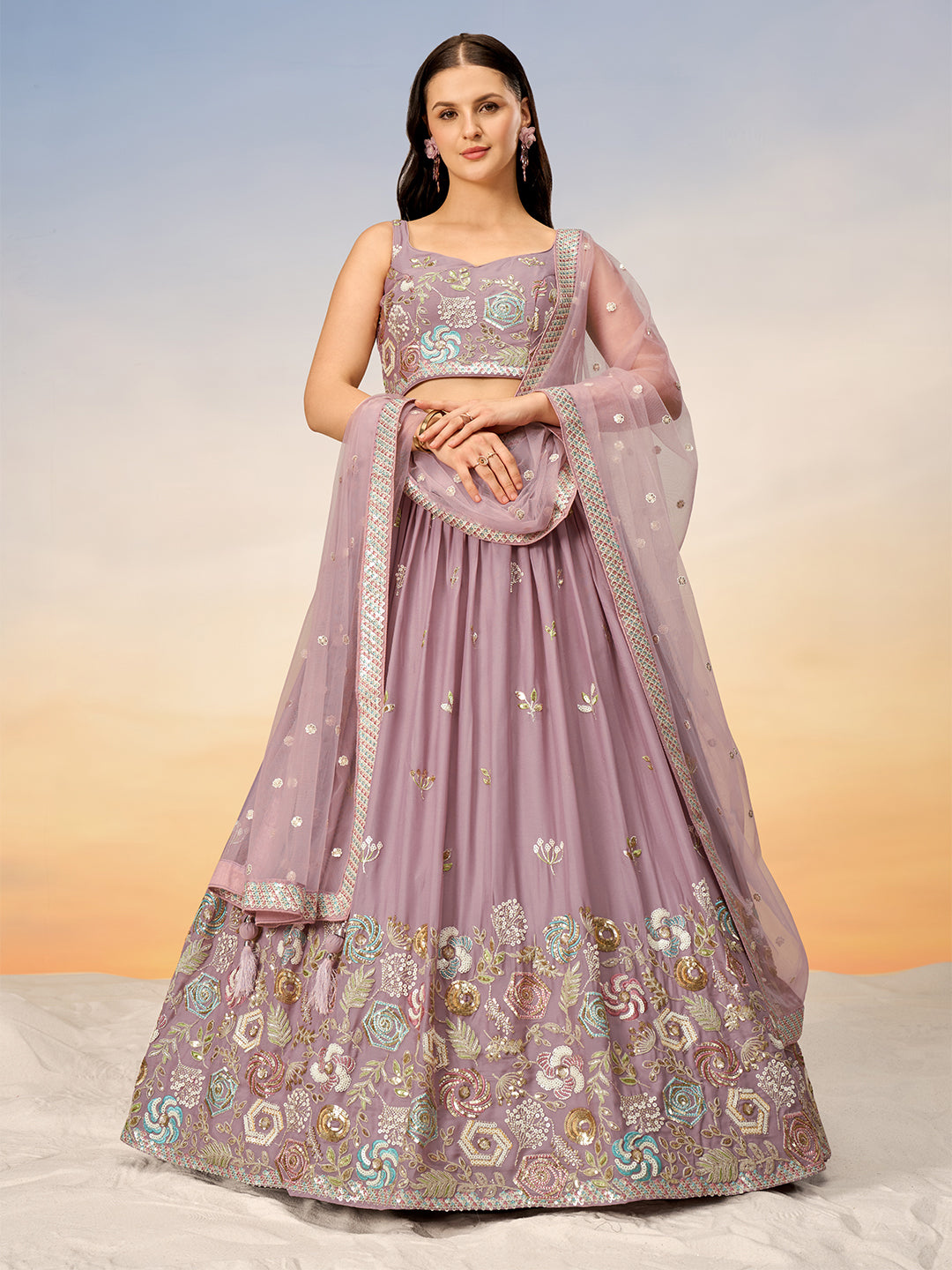 Mauve Pure Georgette Sequins embroidery Semi-Stitched Lehenga choli & Dupatta