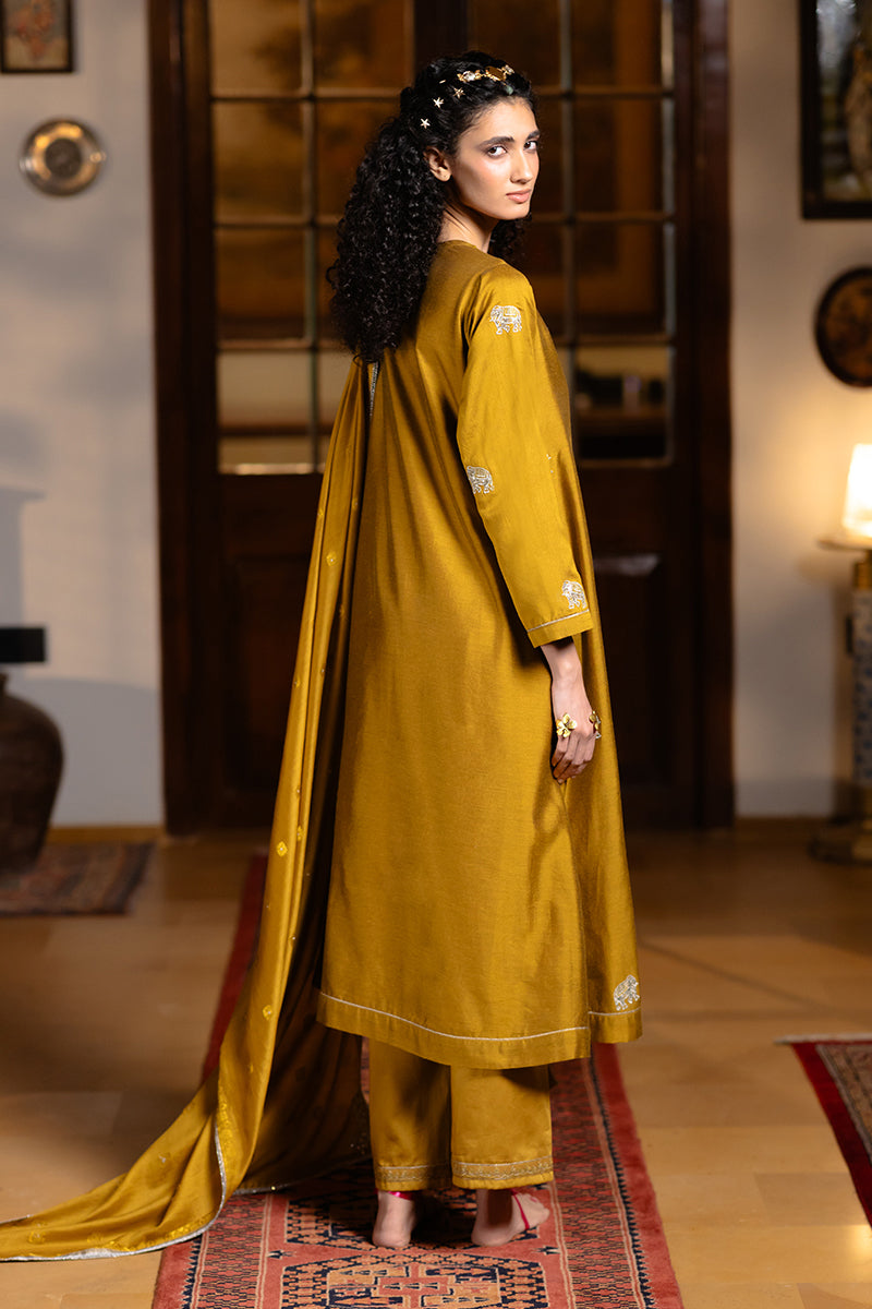 Women's Mustard Silk Embroidered Festive Kurta Set