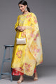 Dhiyona VA Women's Mustard Yellow Floral Embroidered Kurta with Trousers & Dupatta