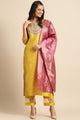 Dhiyona VA Women's Mustard Yellow & Pink Embroidered Kurta with Trousers & Dupatta