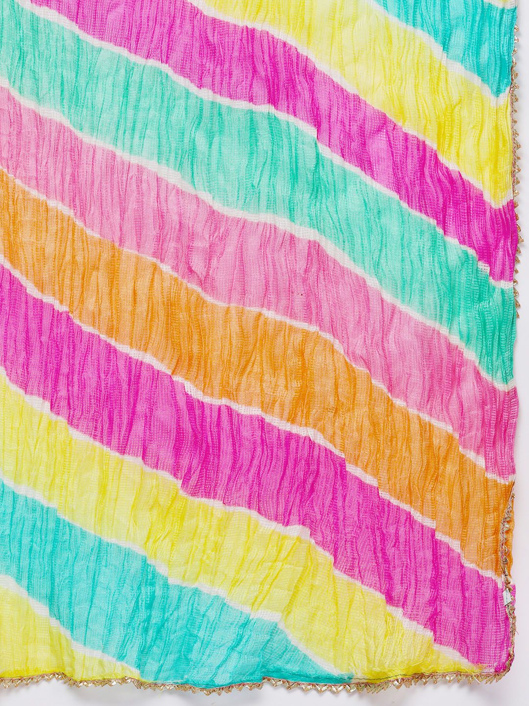 Dhiyona VA Women's Mustard Yellow & Yellow Gotta Patti Cotton Kurta with Palazzos & Dupatta