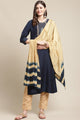 Dhiyona VA Women's Navy Blue Floral Embroidered Kurti Set With Dupatta