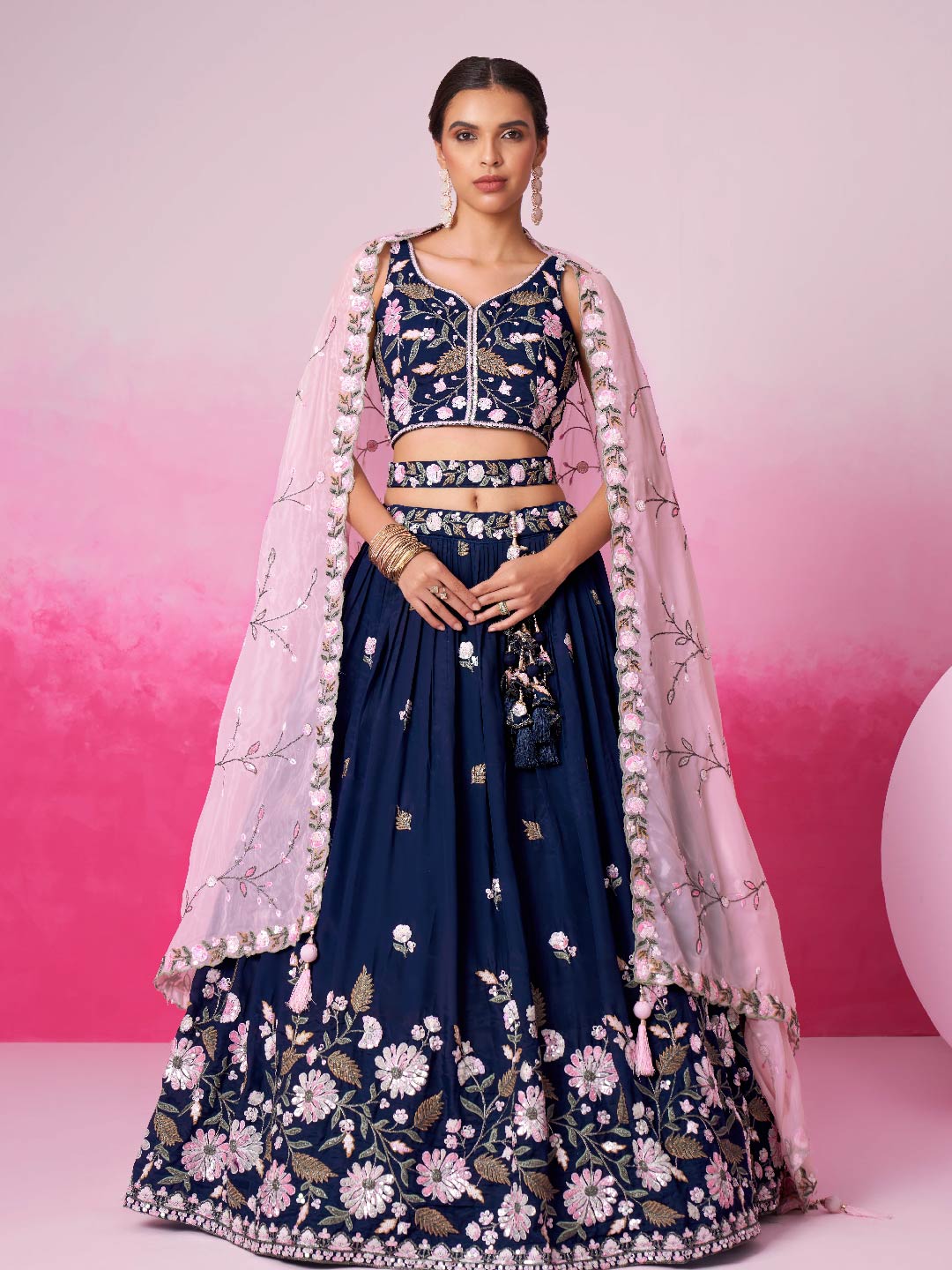 Navy blue Organza Sequins embroidery Lehenga choli & Dupatta