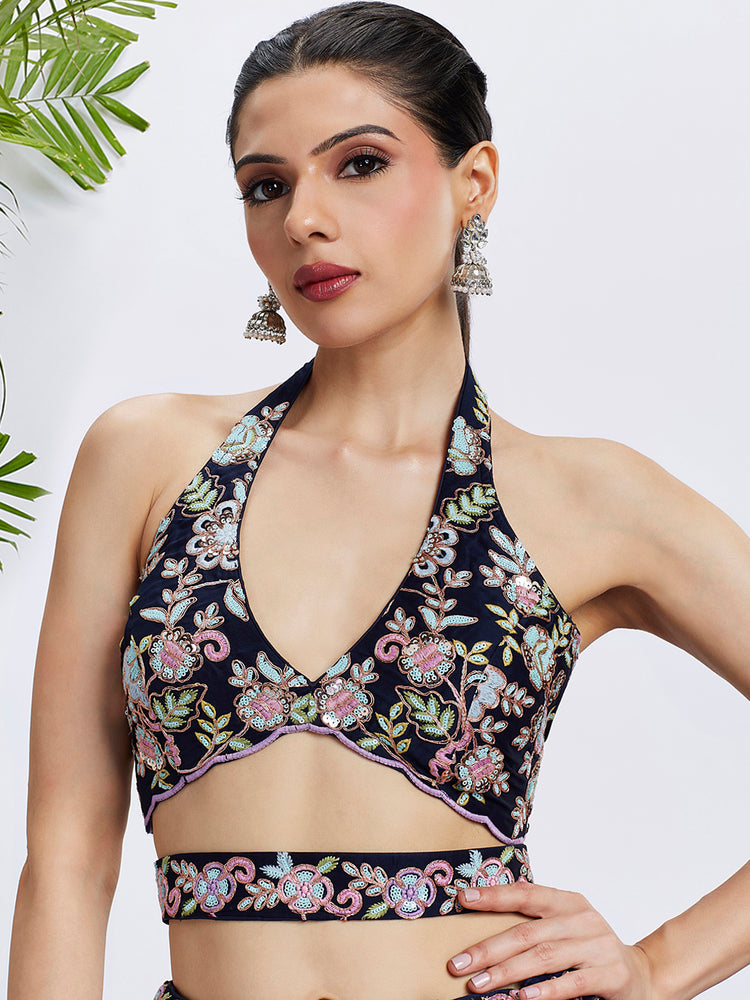 Navy blue Pure Georgette Sequins and thread embroidery Lehenga choli & Dupatta