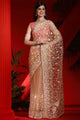 Women's Net Peach Embellished Designer Saree With Blouse Piece