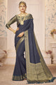 Women's Nylon Navy Blue Woven Design Designer Saree With Blouse Piece