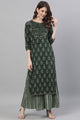 Dhiyona IS Women's Women Olive Green Beige Printed Tuck Detailed Kurta Palazzos