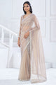 Women's Organza Beige Embellished Designer Saree With Blouse Piece