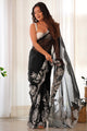 Women's Organza Black Embroidered Designer Saree With Blouse Piece