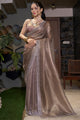 Women's Organza Brown Embellished Designer Saree With Blouse Piece