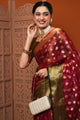 Women's Organza Burgundy Woven Design Designer Saree With Blouse Piece