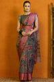 Women's Organza Grey Printed Designer Saree With Blouse Piece
