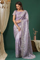Women's Organza Lavendar Embroidered Designer Saree With Blouse Piece