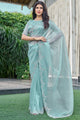 Women's Organza Light Blue Embellished Designer Saree With Blouse Piece