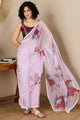 Women's Organza Magenta Digital Print Ready to Wear With Blouse Piece
