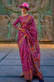 Women's Organza Magenta Woven Design Designer Saree With Blouse Piece