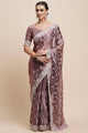 Women's Organza Mauve Embroidered Designer Saree With Blouse Piece
