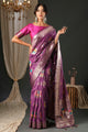 Women's Organza Pink Woven Design Designer Saree With Blouse Piece