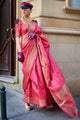 Women's Organza Pink Woven Design Designer Saree With Blouse Piece