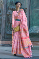 Women's Organza Pink Woven Design Designer Saree With Blouse Piece