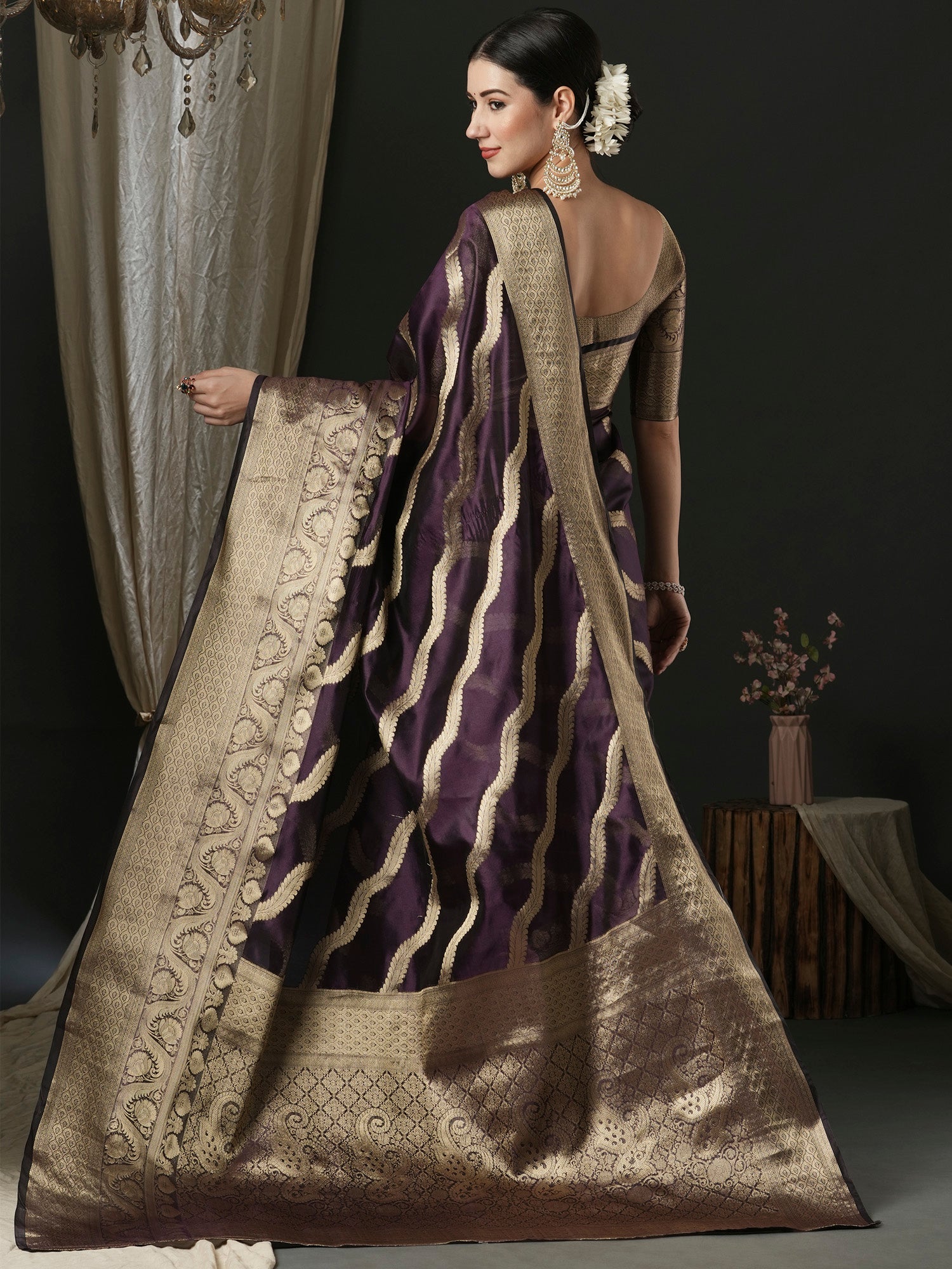 Women's Organza Purple Woven Design Designer Saree With Blouse Piece