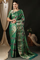 Women's Organza Teal blue Woven Design Designer Saree With Blouse Piece