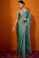 Women's Organza Teal green Embellished Designer Saree With Blouse Piece