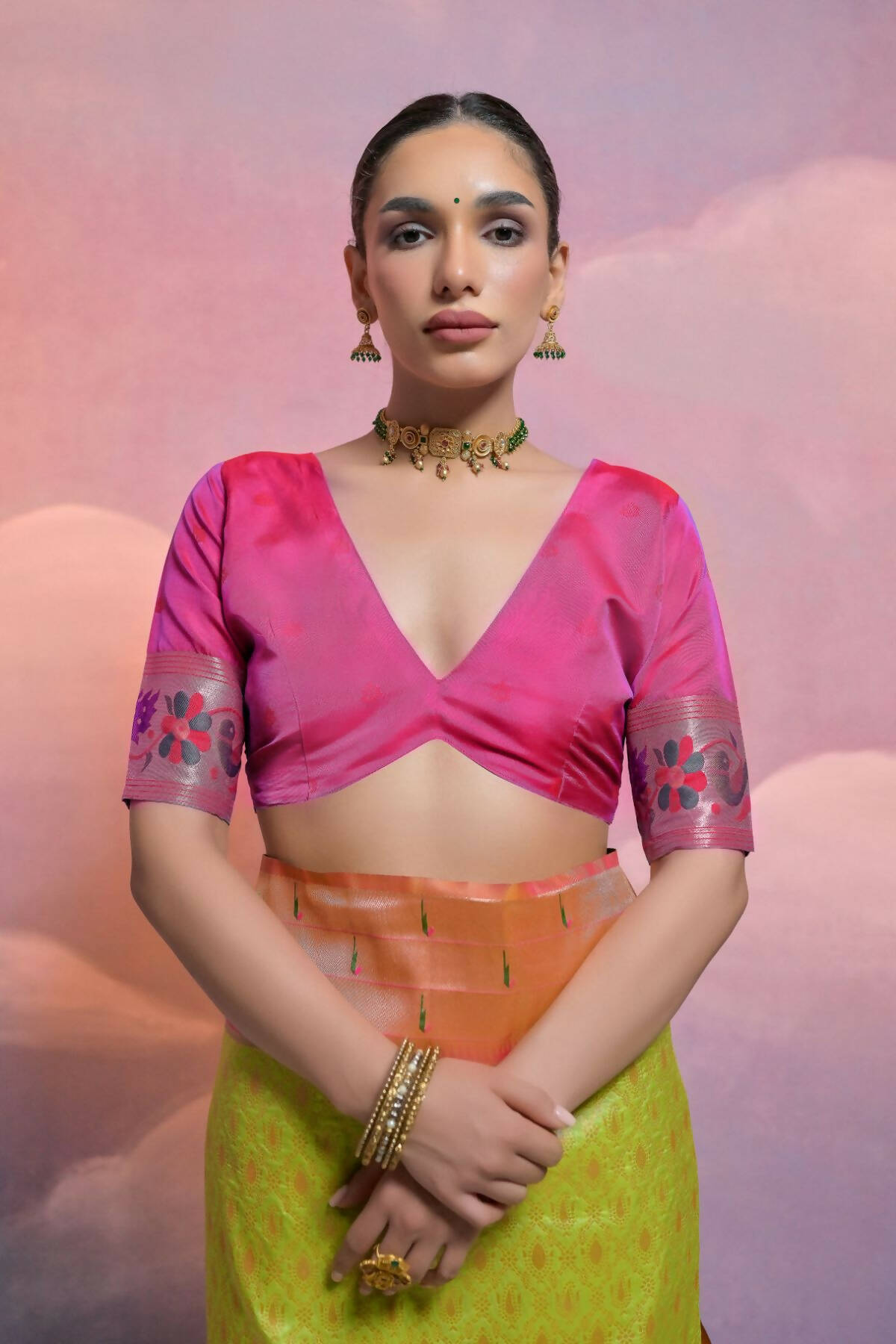 Women Paithani Vani Mahendi Saree With Unstiched Blouse
