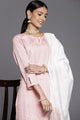 Peach-coloured embroidered Kurta with Trousers with dupatta