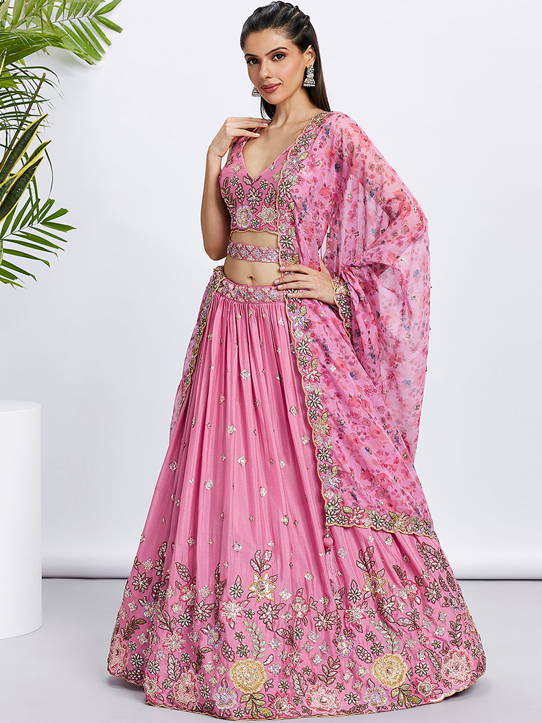 Pink Chiffon Sequins and thread embroidery Lehenga choli & Printed Dupatta
