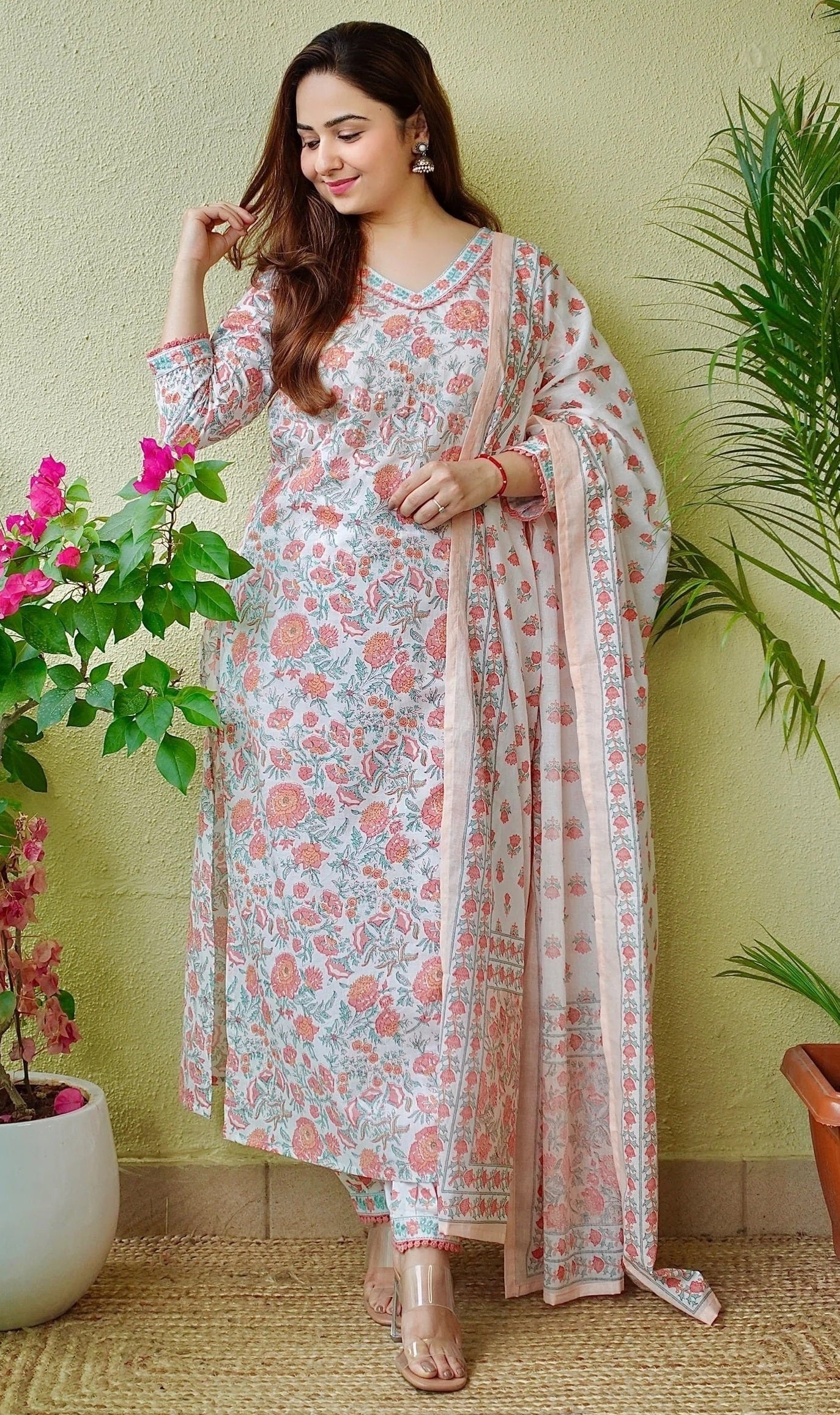 Women Pink Embroidery Viscose Rayon Kurta, Pant And Dupatta Set