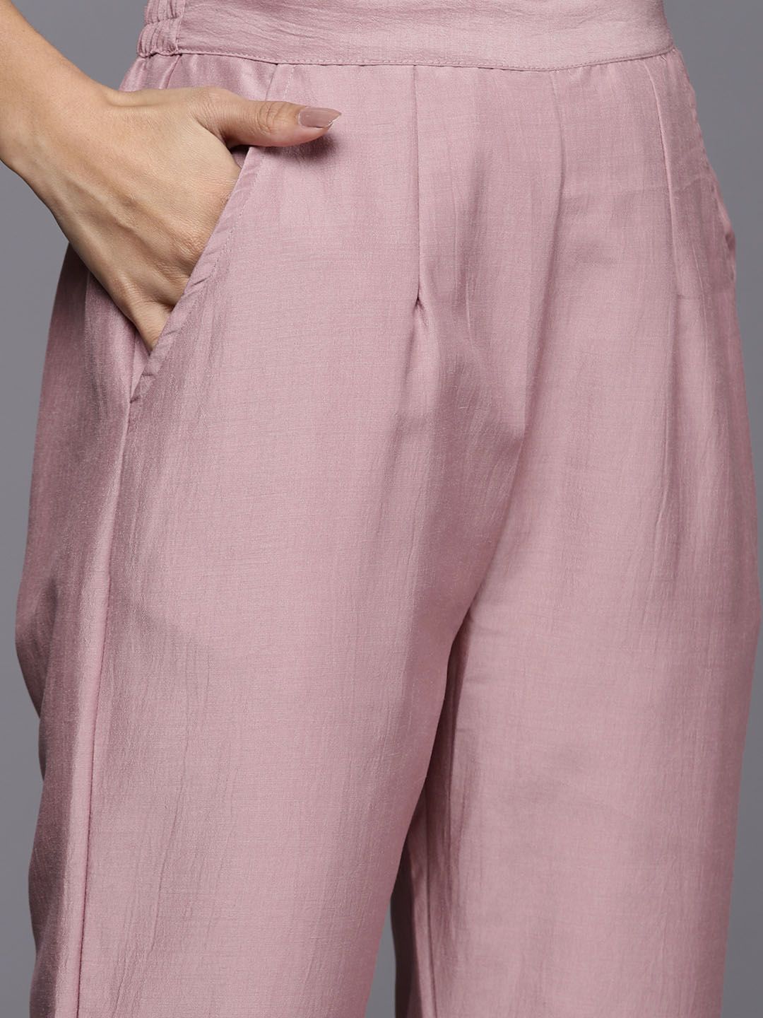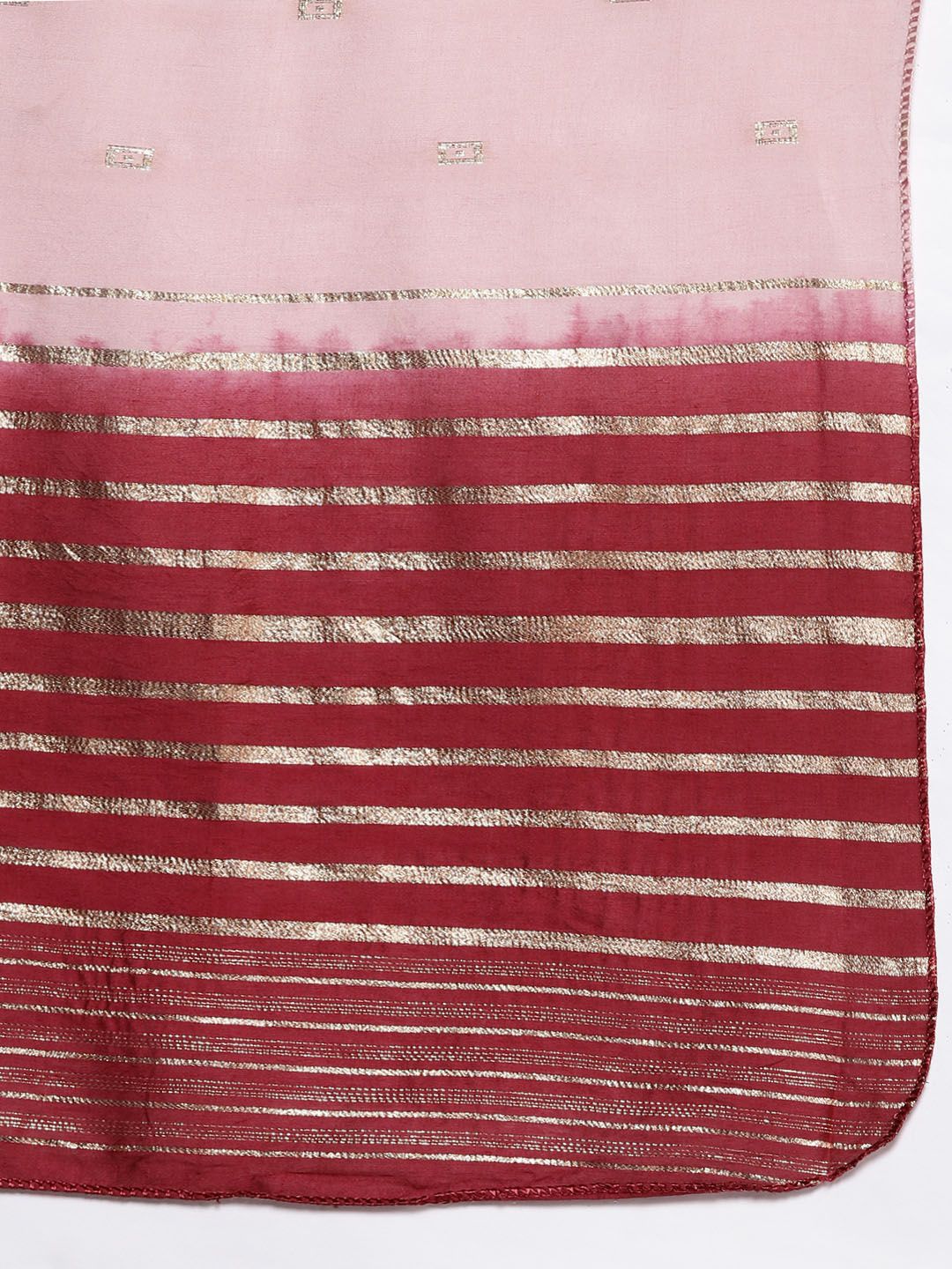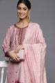 Dhiyona VA Women's Pink Ethnic Motifs Embroidered Sequinned Kurta with Trousers & With Dupatta
