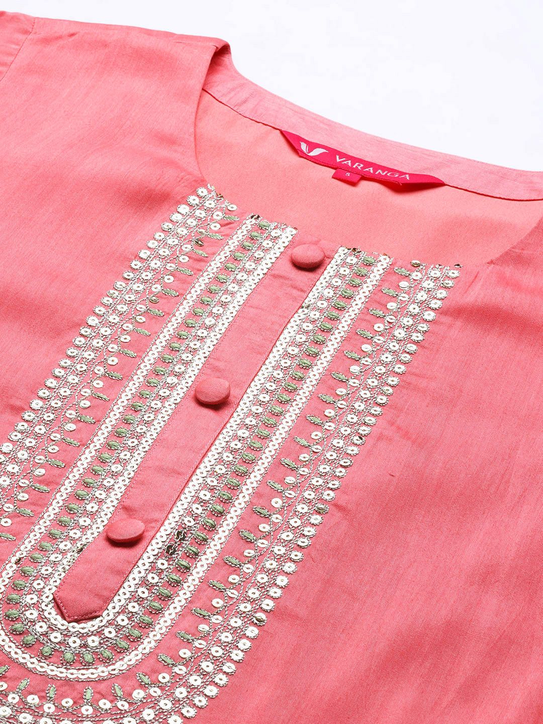 Dhiyona VA Women's Pink Ombre Printed Sequinned Kurta with Trousers & With Dupatta
