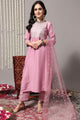 Dhiyona VA Women's Pink & Silver-Toned Yoke Design Kurta with Palazzos & Dupatta