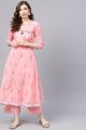 Dhiyona IS Women's Women Pink & White Printed Kurta with Palazzos