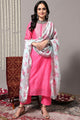 Dhiyona VA Women's Pink Yoke Design Sequinned Chanderi Silk Kurta with Palazzos & With Dupatta