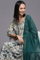 Dhiyona VA Women's Printed Pleated Silk Georgette Kurta with Trousers & Dupatta