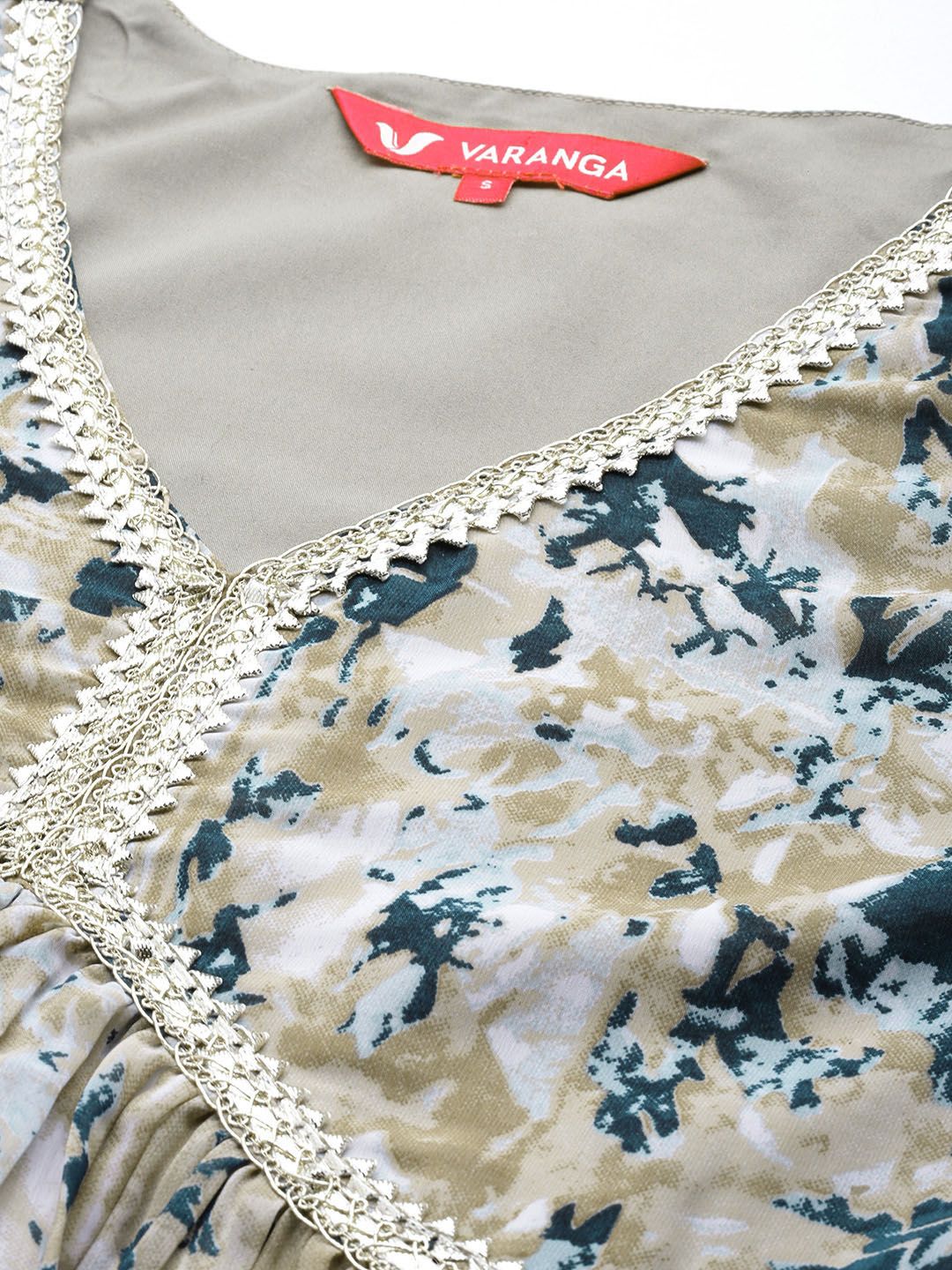 Beige printed Kurta with Trousers with dupatta