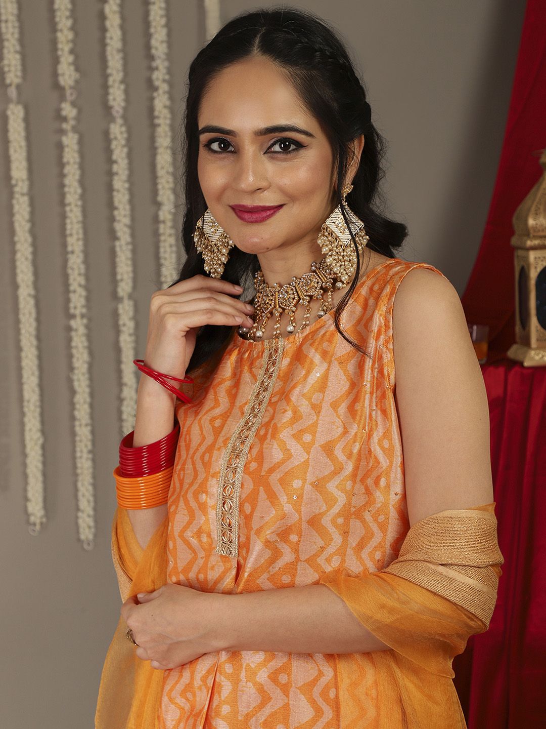 Dhiyona VA Women's Printed Sequinned Kurta With Trousers & Dupatta