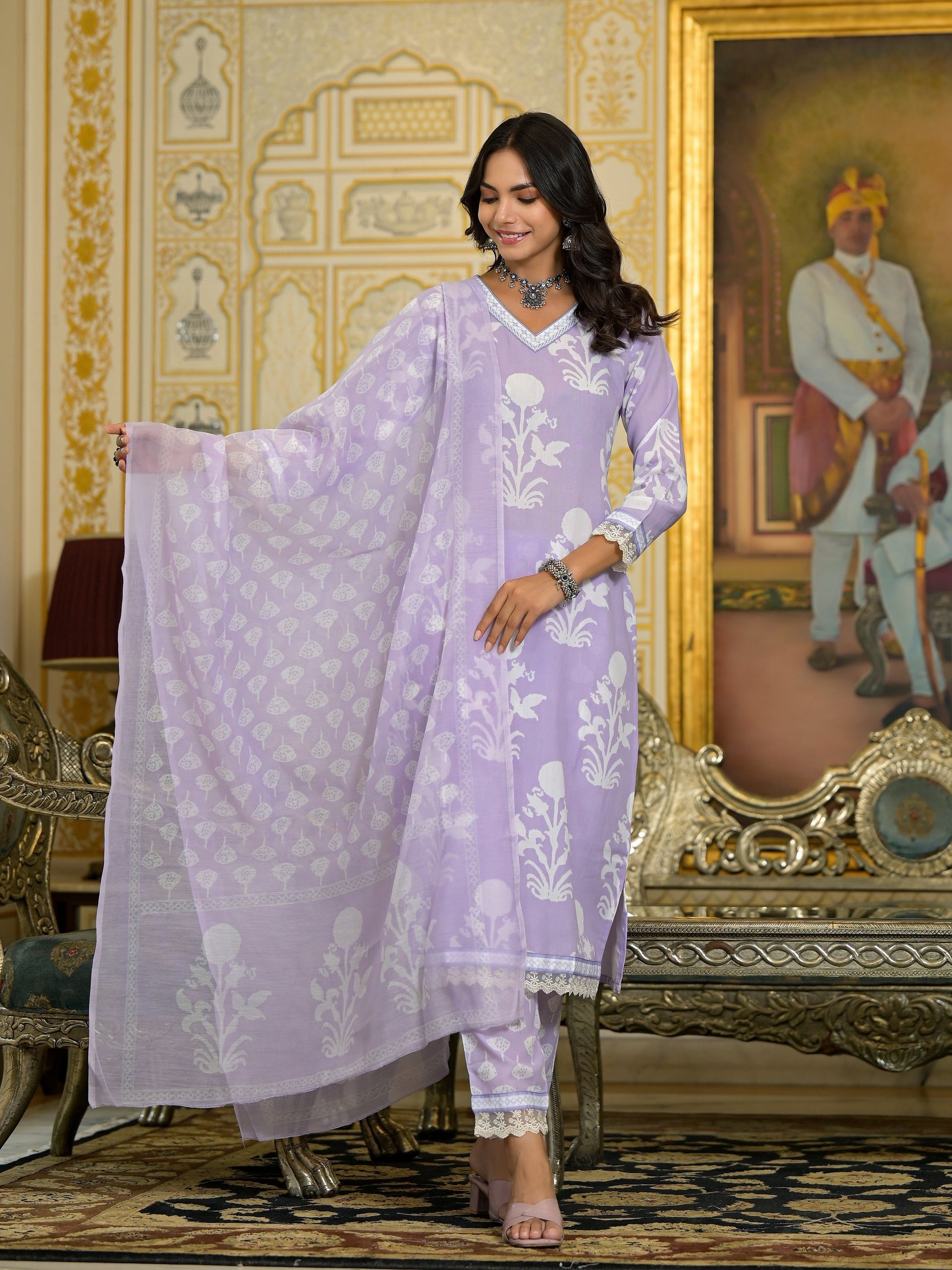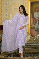 Women Purple Embroidery Viscose Rayon Kurta, Pant And Dupatta Set