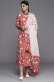 Dhiyona VA Women's Red Ethnic Motifs Printed Pure Cotton Kurta with Trousers & Dupatta