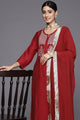 Red embroidered Kurta with Trousers with dupatta