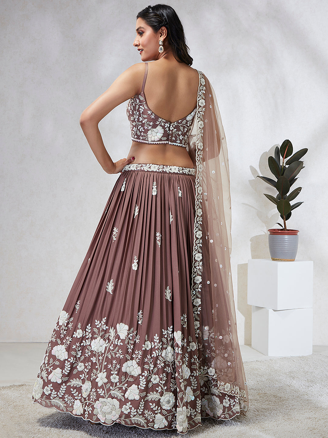 Women Rose gold Pure Georgette Sequins and thread embroidery Lehenga choli & Dupatta