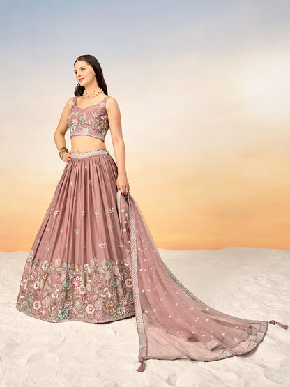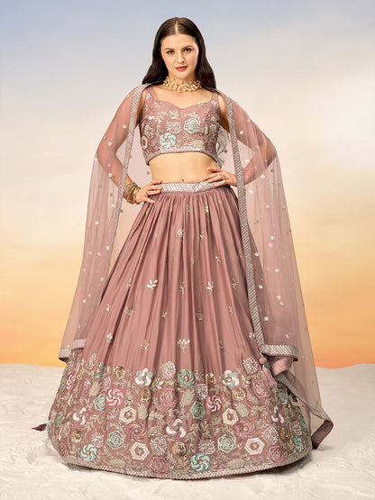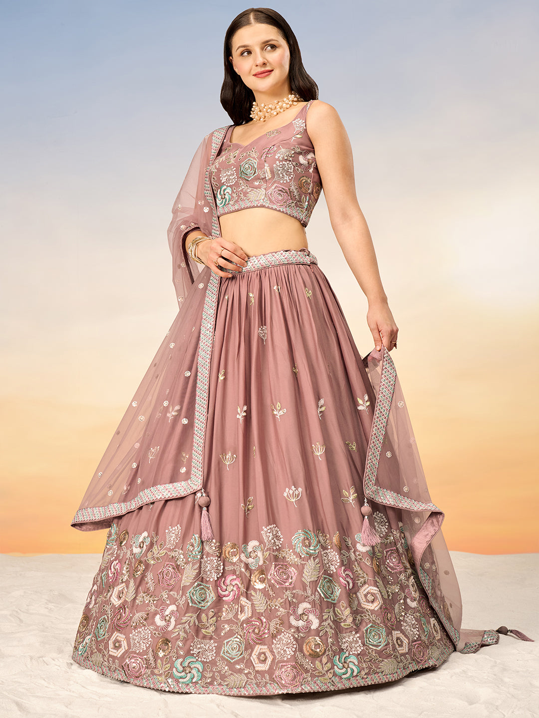 Rose gold Pure Georgette Sequins embroidery Semi-Stitched Lehenga choli & Dupatta