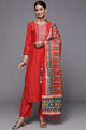 Rust embroidered Kurta with Trousers with dupatta