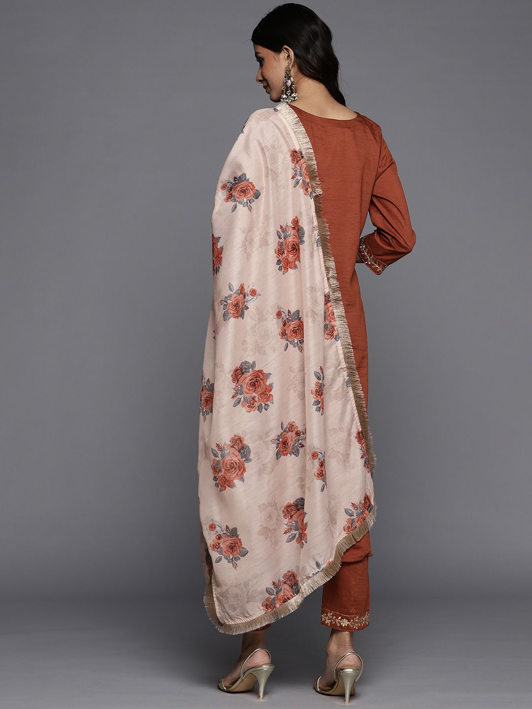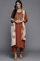 Dhiyona VA Women's Rust Orange Yoke Design Sequinned Kurta with Trousers & Dupatta