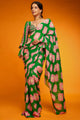 Women's Satin Green Printed Designer Saree With Blouse Piece