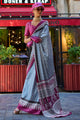 Women's Satin Grey Printed Designer Saree With Blouse Piece
