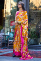 Women's Satin Mustard Printed Designer Saree With Blouse Piece