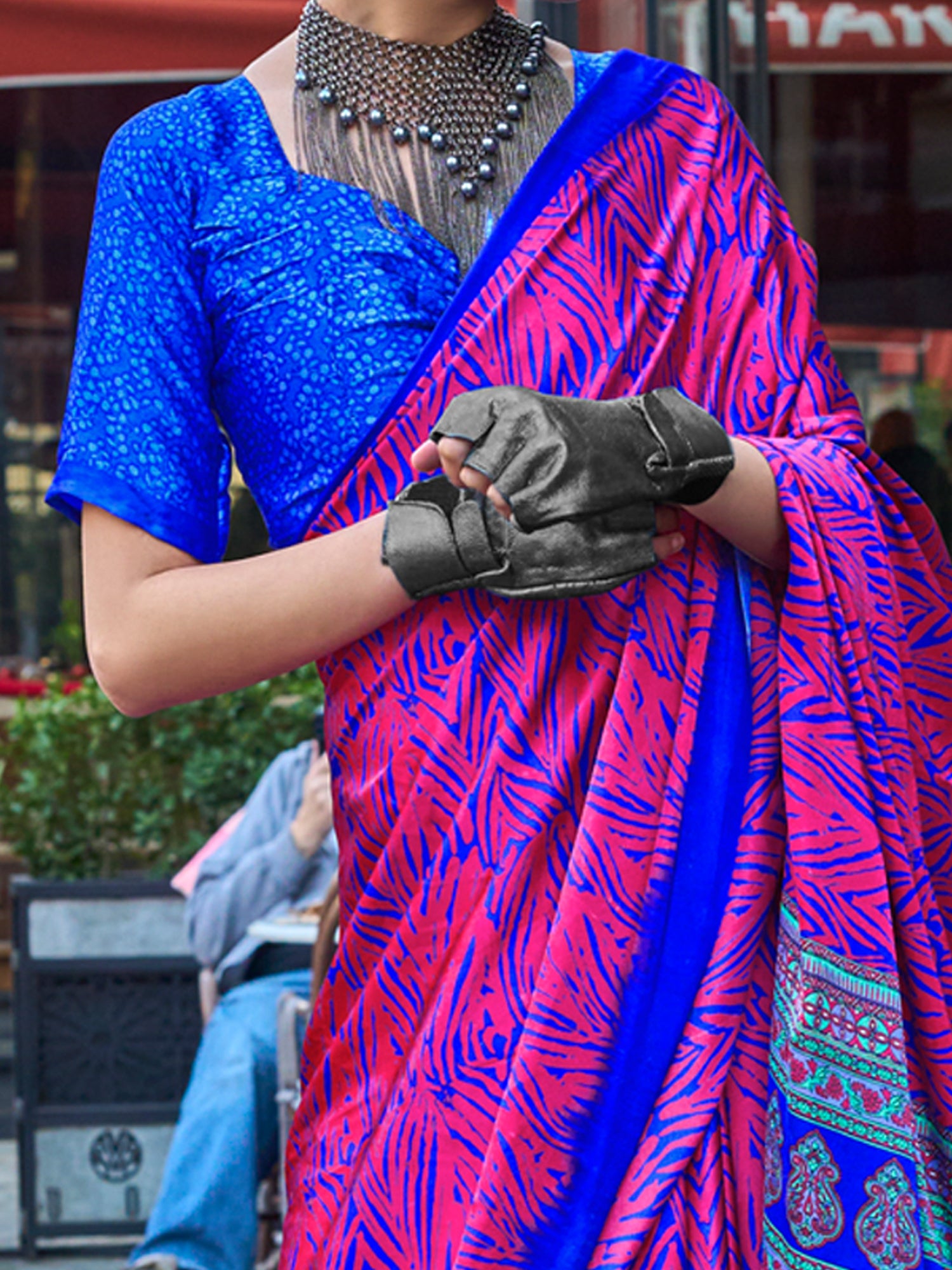 Women's Satin Pink Printed Designer Saree With Blouse Piece